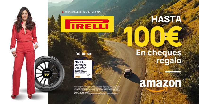 Por la compra de 4 neumáticos Pirelli llanta 20” o superior el participante obtendrá un cheque regalo en Amazon por valor de 100€.